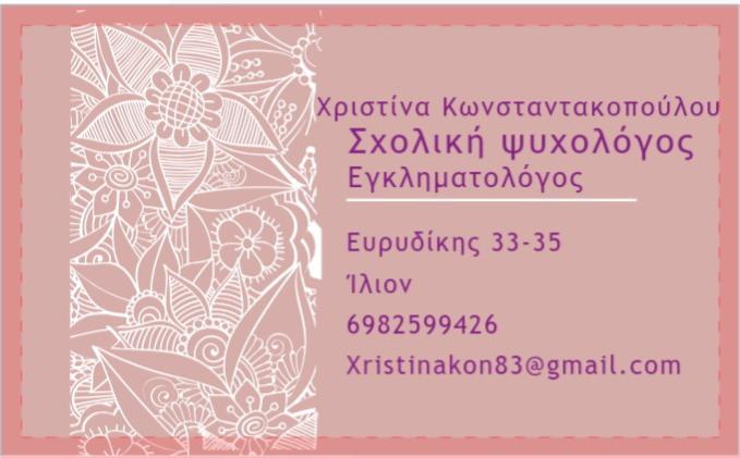 • Σχολική Ψυχολόγος Kωνσταντακοπουλου Χριστίνα